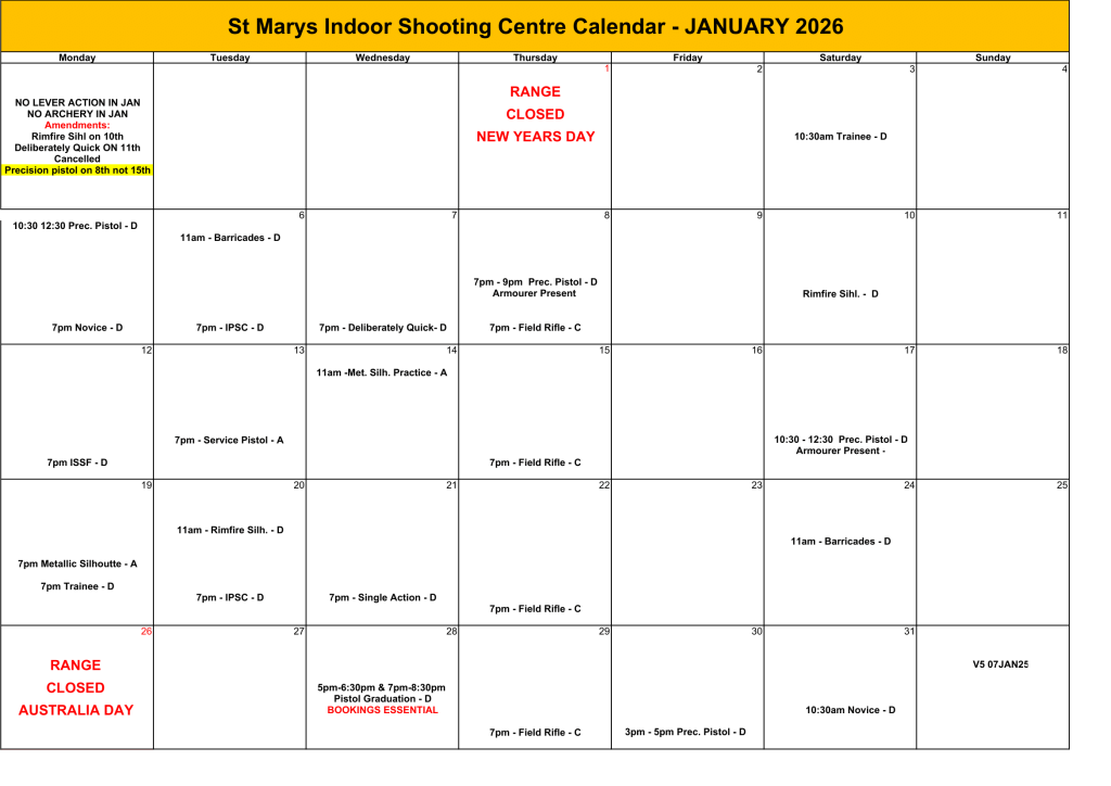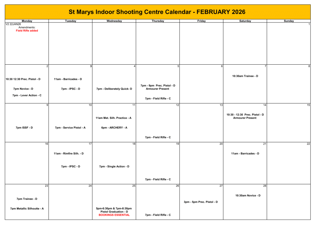 St Marys Indoor Shooting Centre will be conducting Lever Action Rifle Competition on the first…
